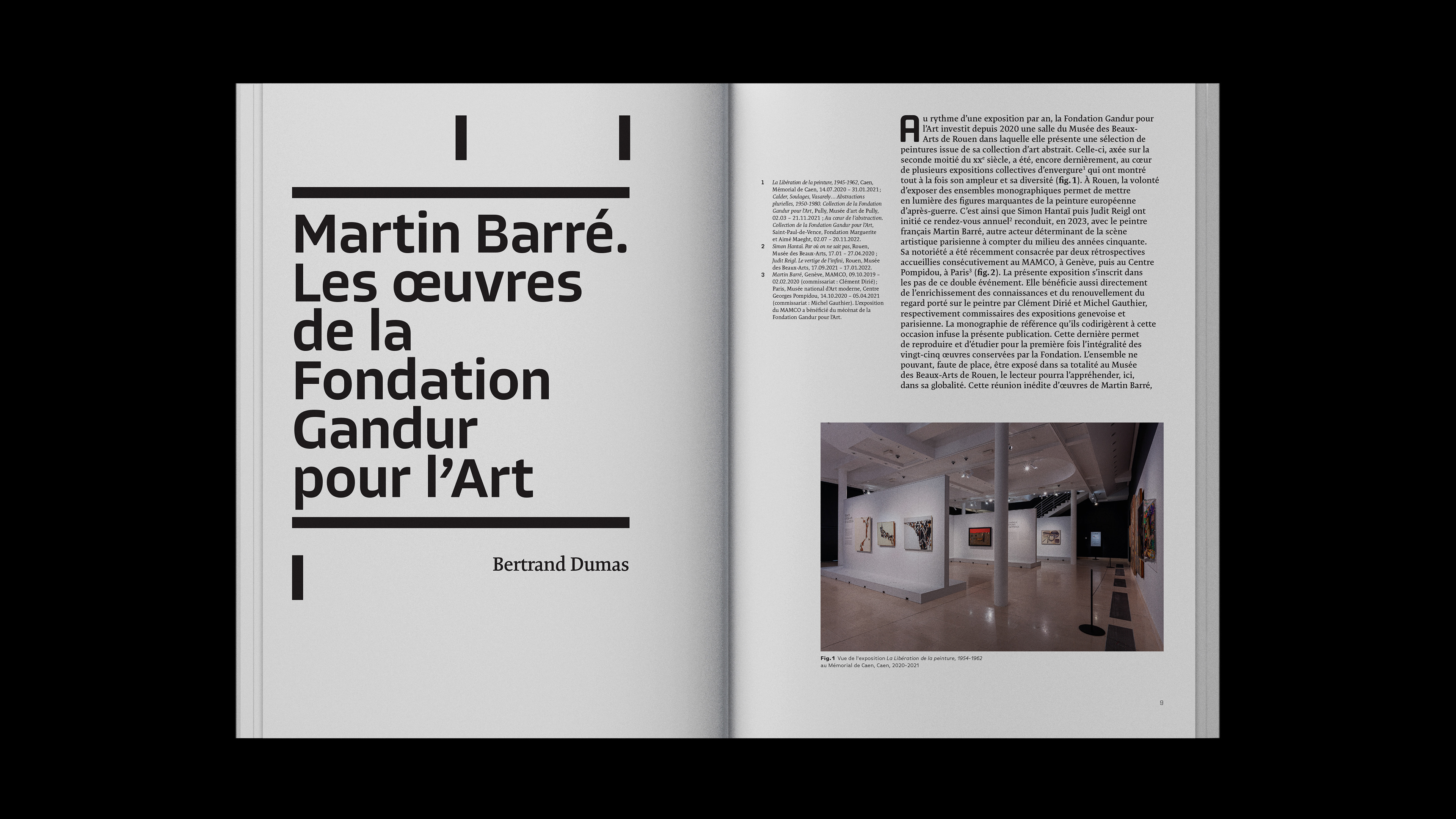 This catalog was published on the event of the exhibition Martin Barré. Les œuvres de la Fondation Gandur pour l’Art with the collaboration of Réunion des Musées Métropolitains Rouen Normandie from February 10th to September 17th 2023.