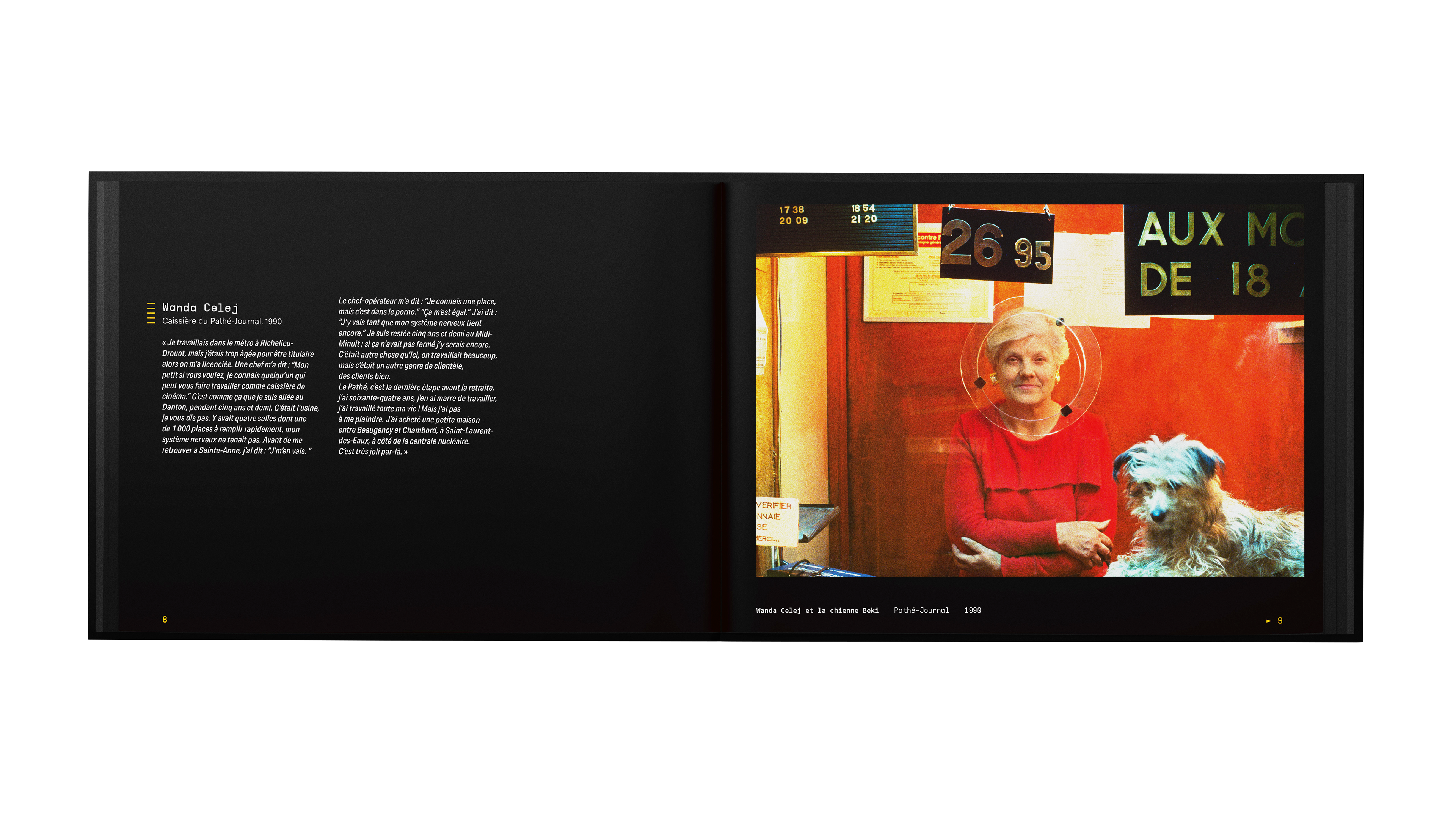 The images are joined by numerous texts reporting life narratives of cashiers, receptionists and projectionnists.